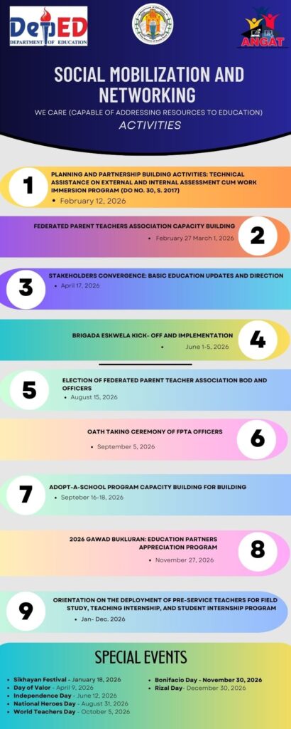 Social Mobilization and Networking Section CALENDAR of ACTIVITIES Take part in the Bayanihan movement in Schools Division Office of Santa Rosa City.